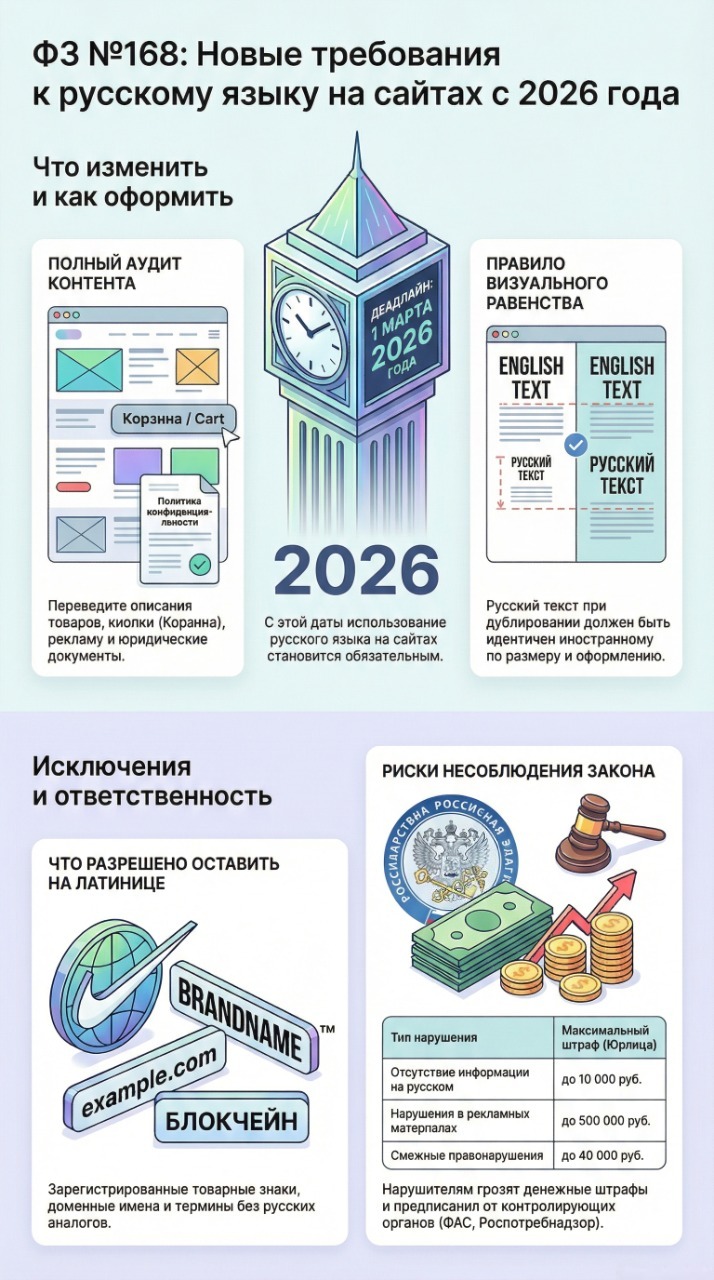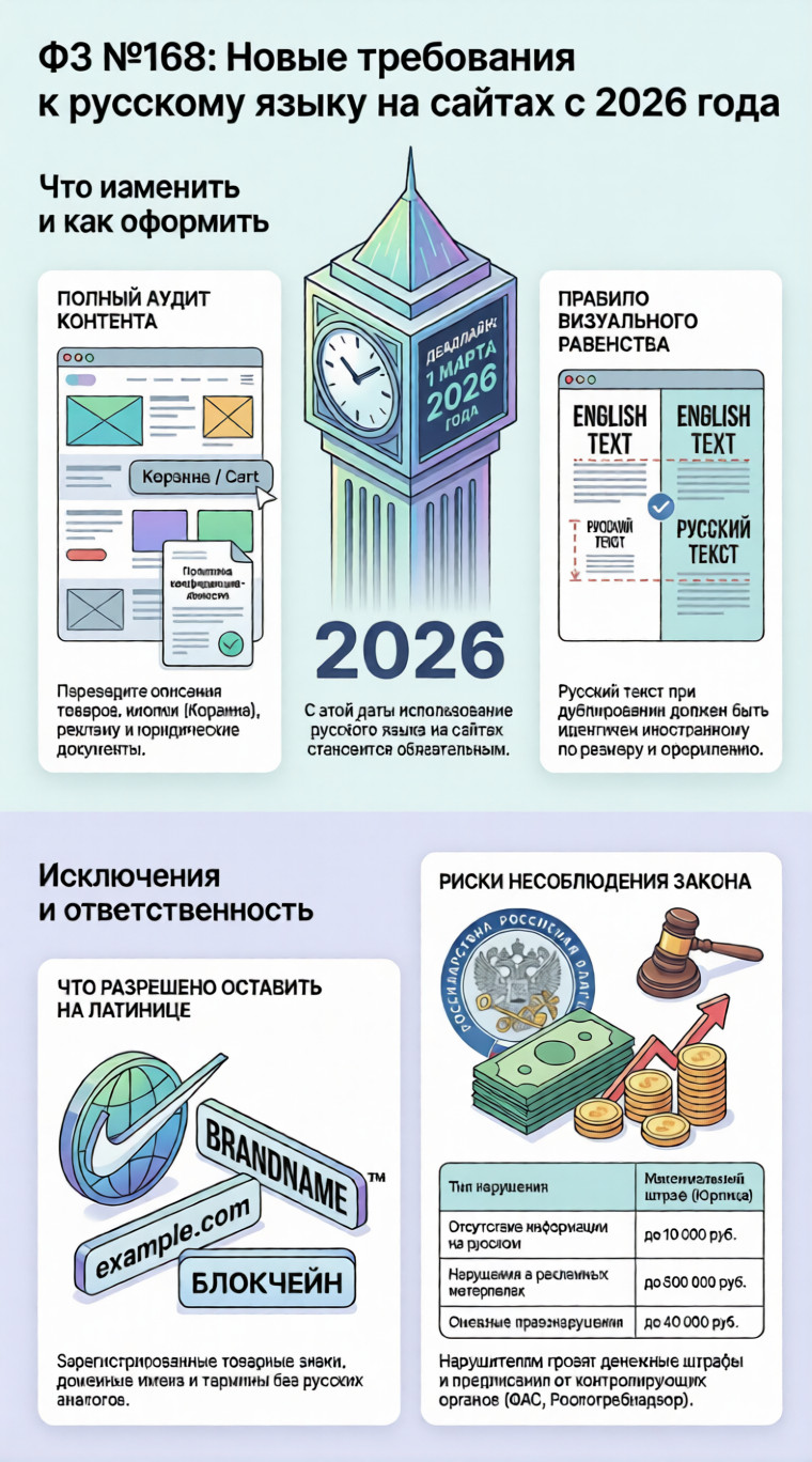 Адаптация сайта под ФЗ №168 с 2026: русский язык, домен, интерфейс